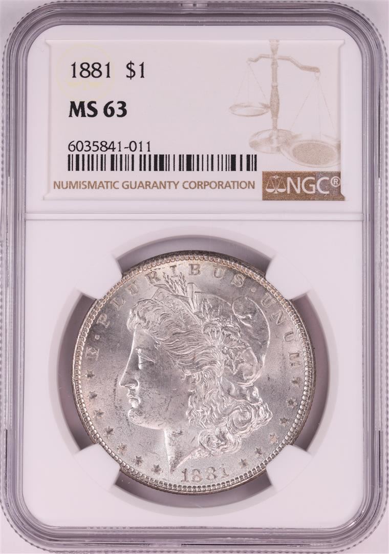 One 1881 $1 Morgan Silver Dollar Coin NGC MS63.
