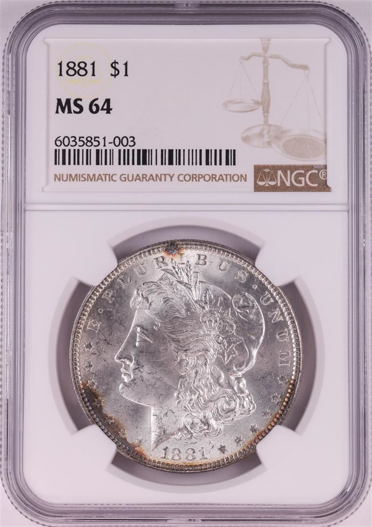 One 1881 $1 Morgan Silver Dollar Coin NGC MS64.
