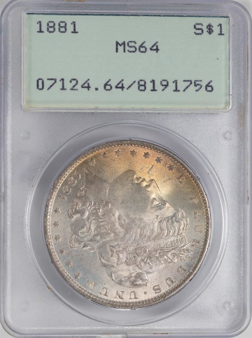 1881 $1 Morgan Silver Dollar Coin PCGS MS64 Old Green Rattler Nice Toning