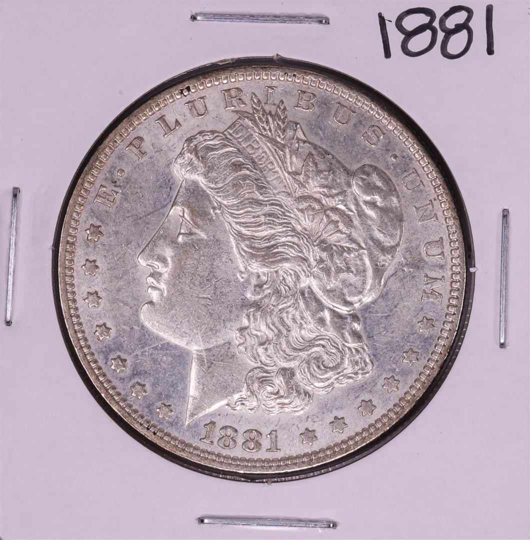 One 1881 $1 Morgan Silver Dollar Coin.