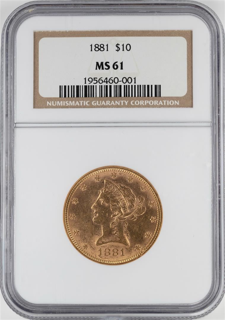 One 1881 $10 Liberty Head Eagle Gold Coin NGC MS61. NGC Certified.
