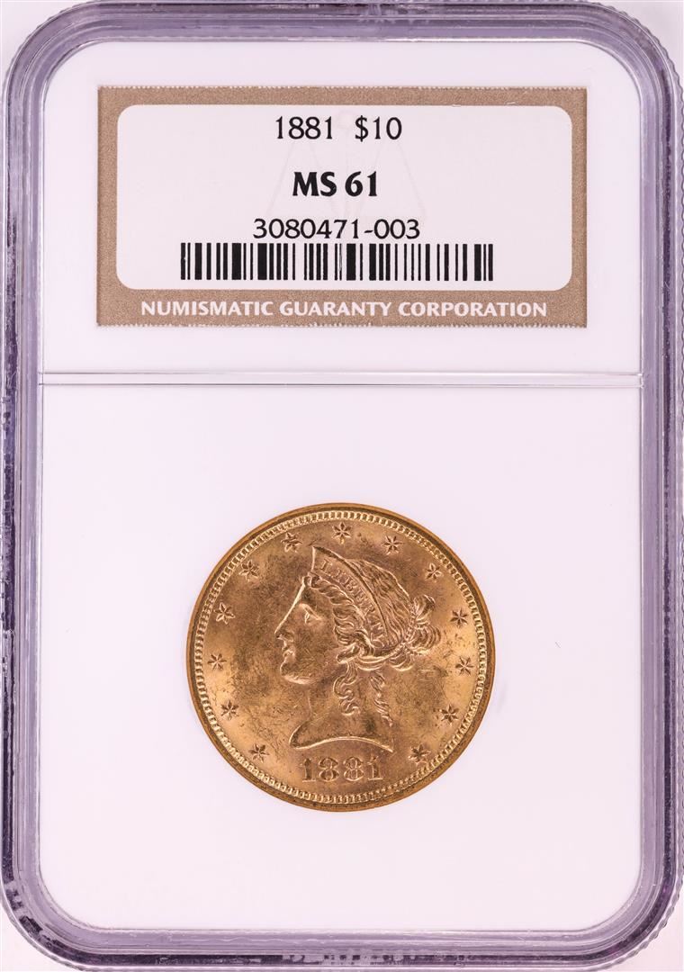 One 1881 $10 Liberty Head Eagle Gold Coin NGC MS61. NGC Certified.