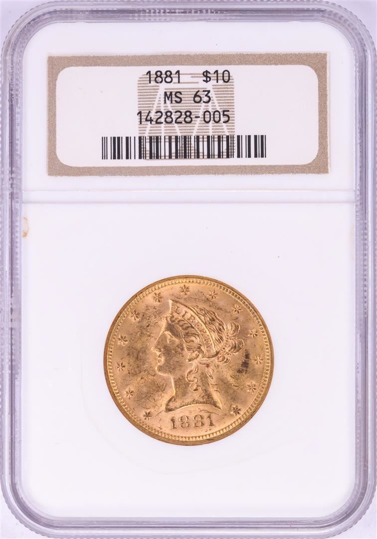 One 1881 $10 Liberty Head Eagle Gold Coin NGC MS63. NGC Certified.