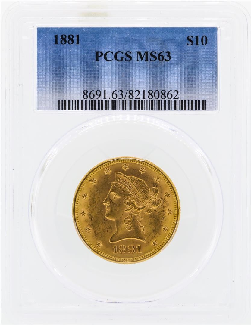 One 1881 $10 Liberty Head Eagle Gold Coin PCGS MS63. PCGS Graded.