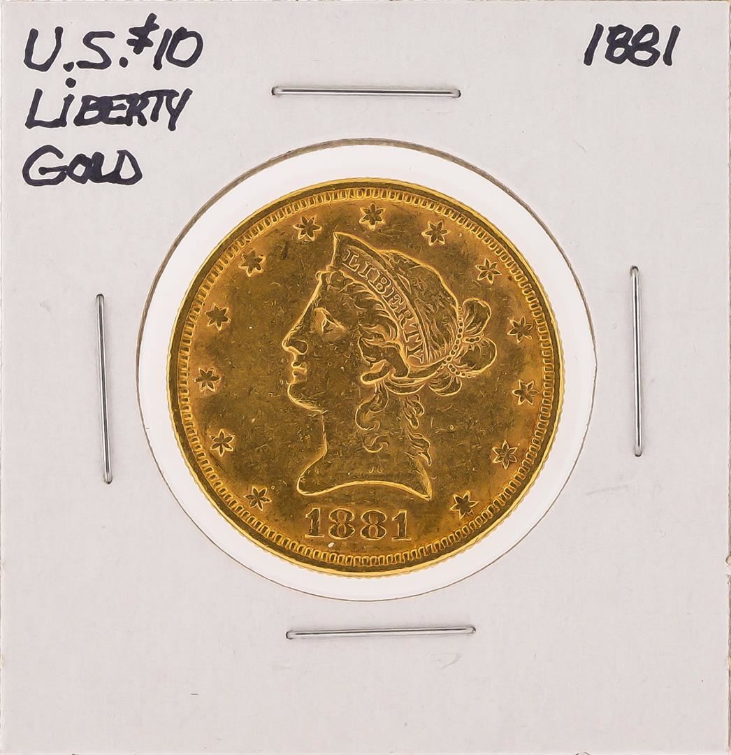 One 1881 $10 Liberty Head Eagle Gold Coin.