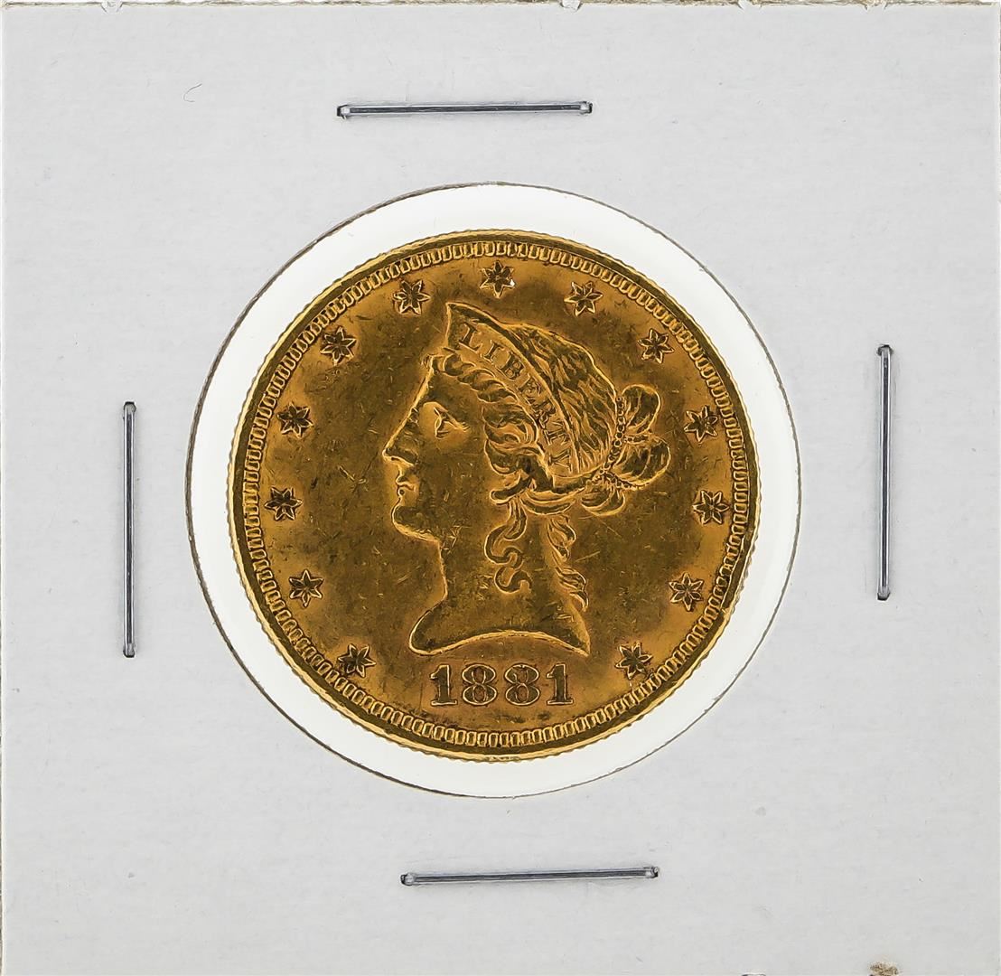 One 1881 $10 Liberty Head Eagle Gold Coin.