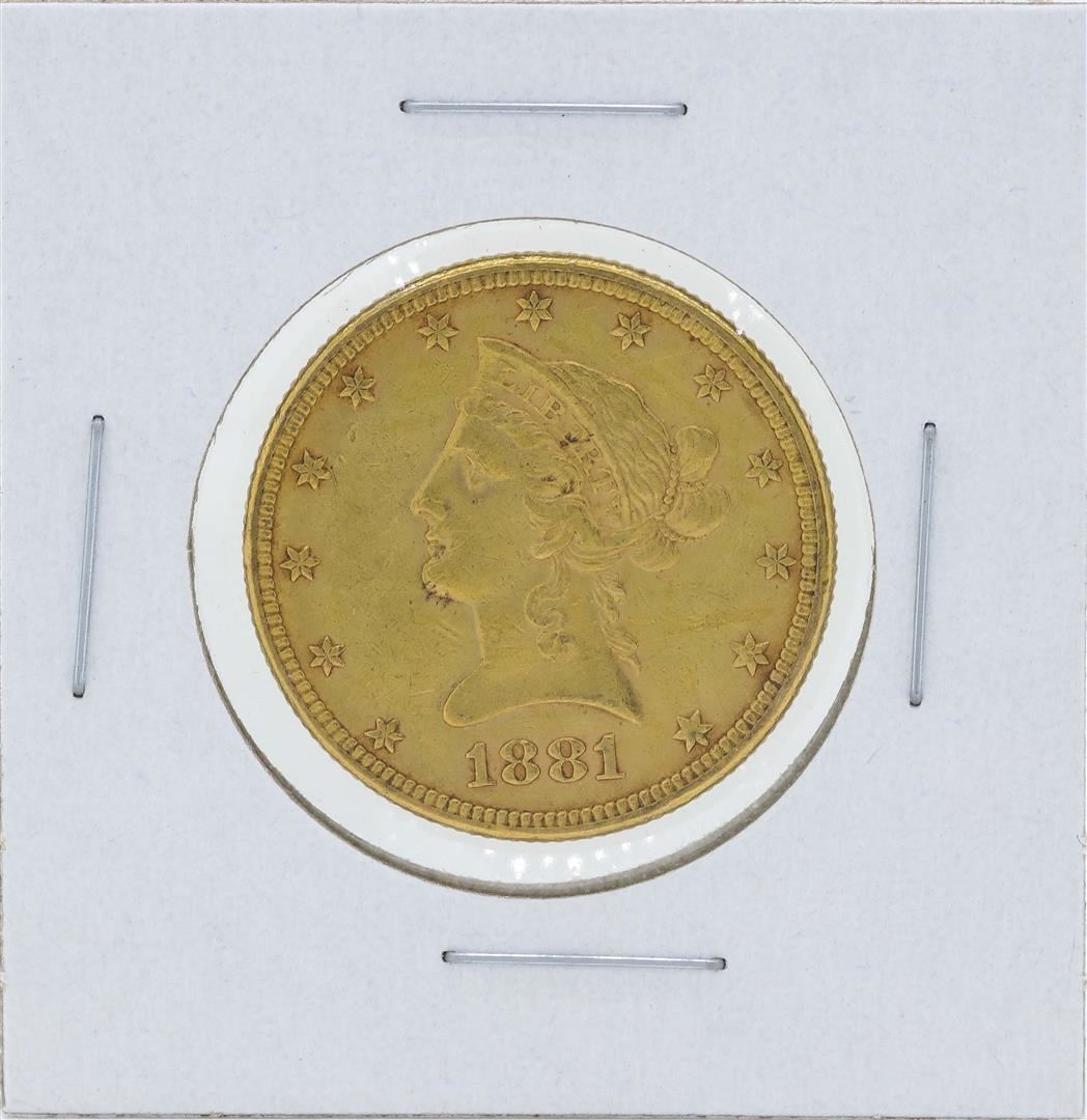 One 1881 $10 Liberty Head Eagle Gold Coin.