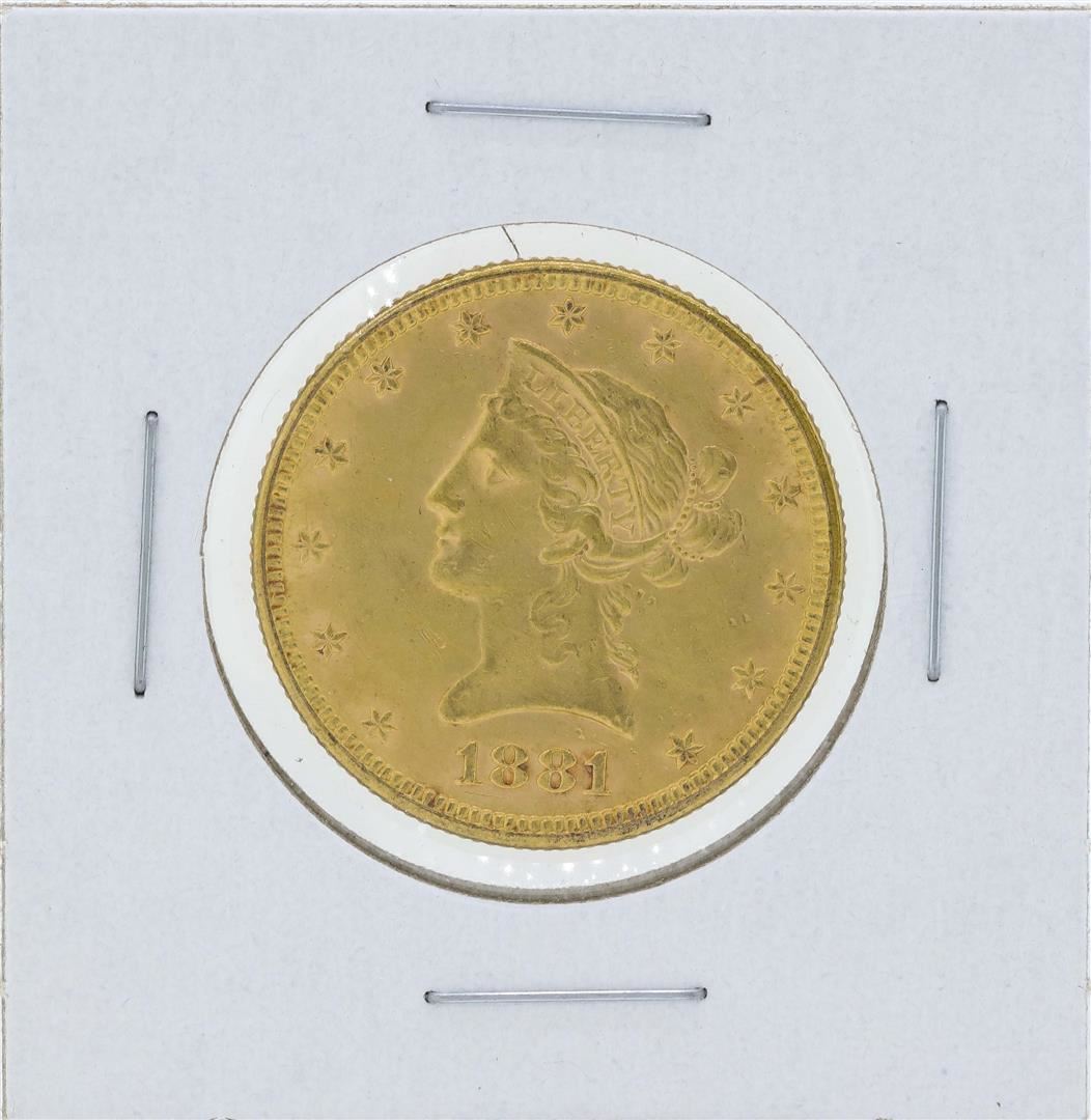 One 1881 $10 Liberty Head Eagle Gold Coin.
