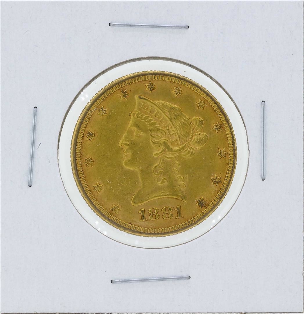 One 1881 $10 Liberty Head Eagle Gold Coin.