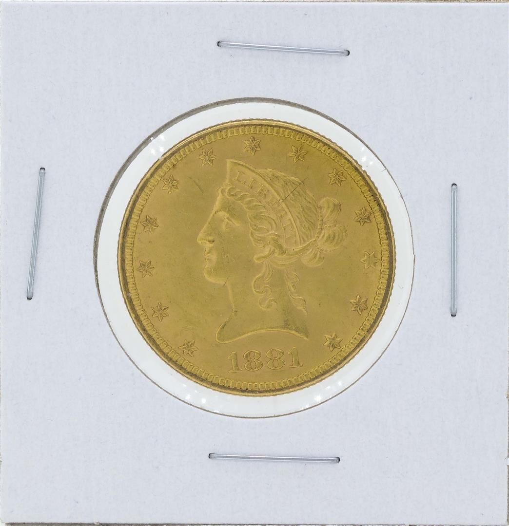 One 1881 $10 Liberty Head Eagle Gold Coin.