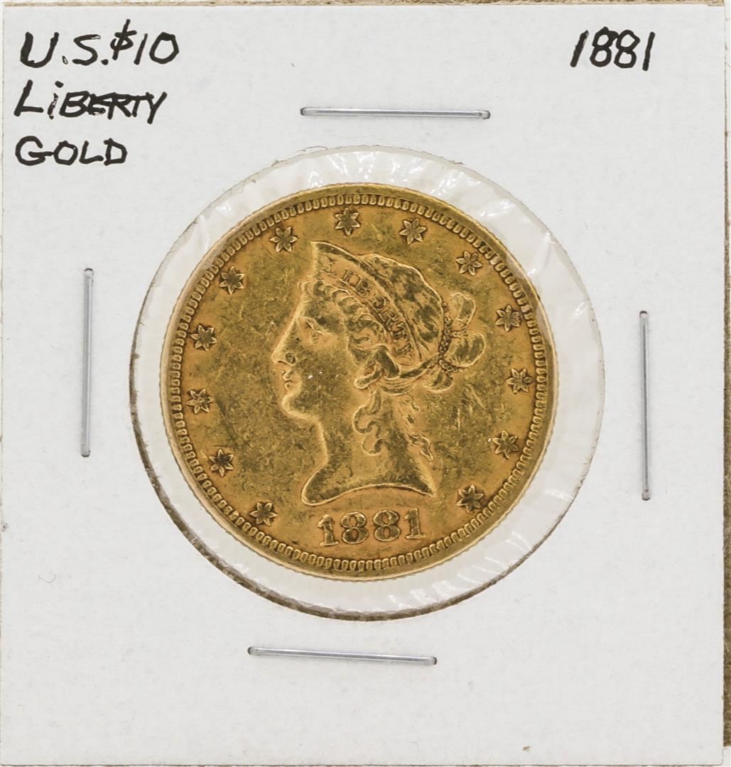 One 1881 $10 Liberty Head Eagle Gold Coin.
