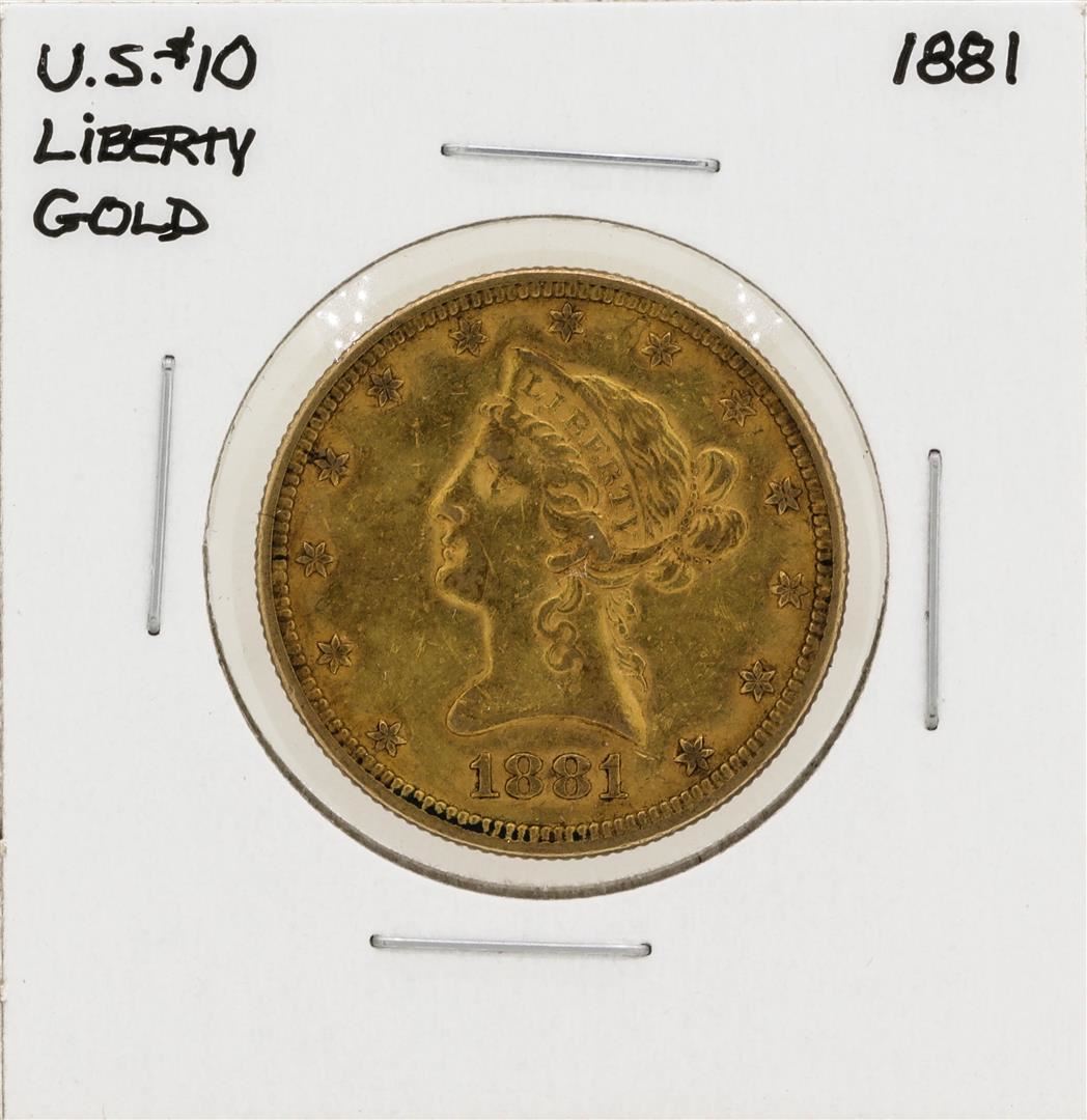One 1881 $10 Liberty Head Eagle Gold Coin.