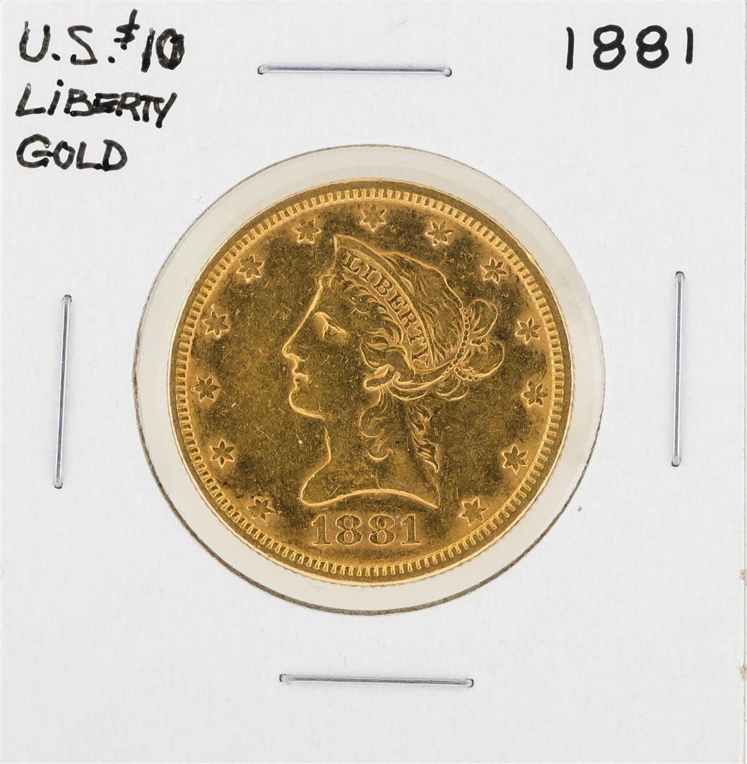 One 1881 $10 Liberty Head Eagle Gold Coin.