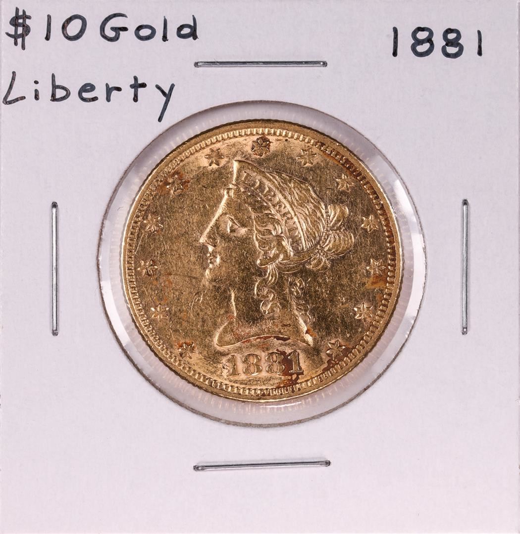 One 1881 $10 Liberty Head Eagle Gold Coin.