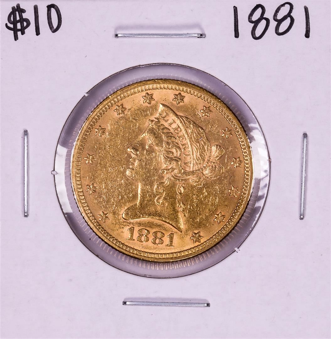 One 1881 $10 Liberty Head Eagle Gold Coin.