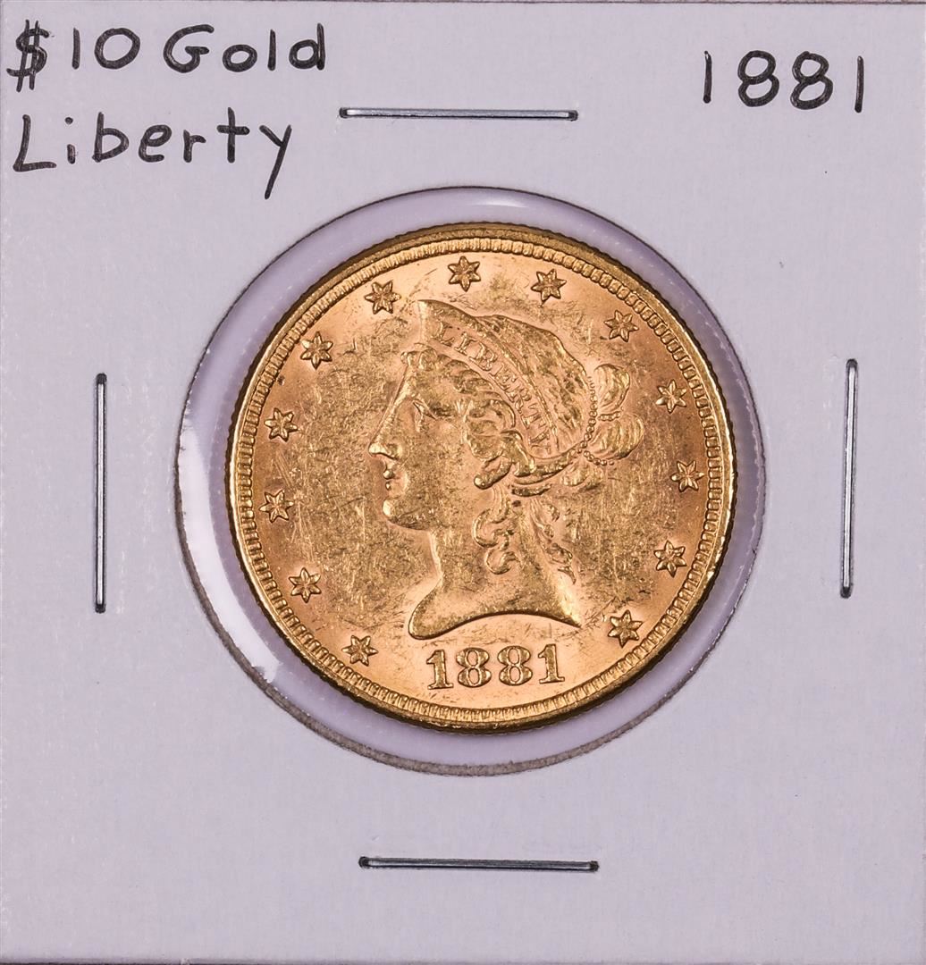 One 1881 $10 Liberty Head Eagle Gold Coin.