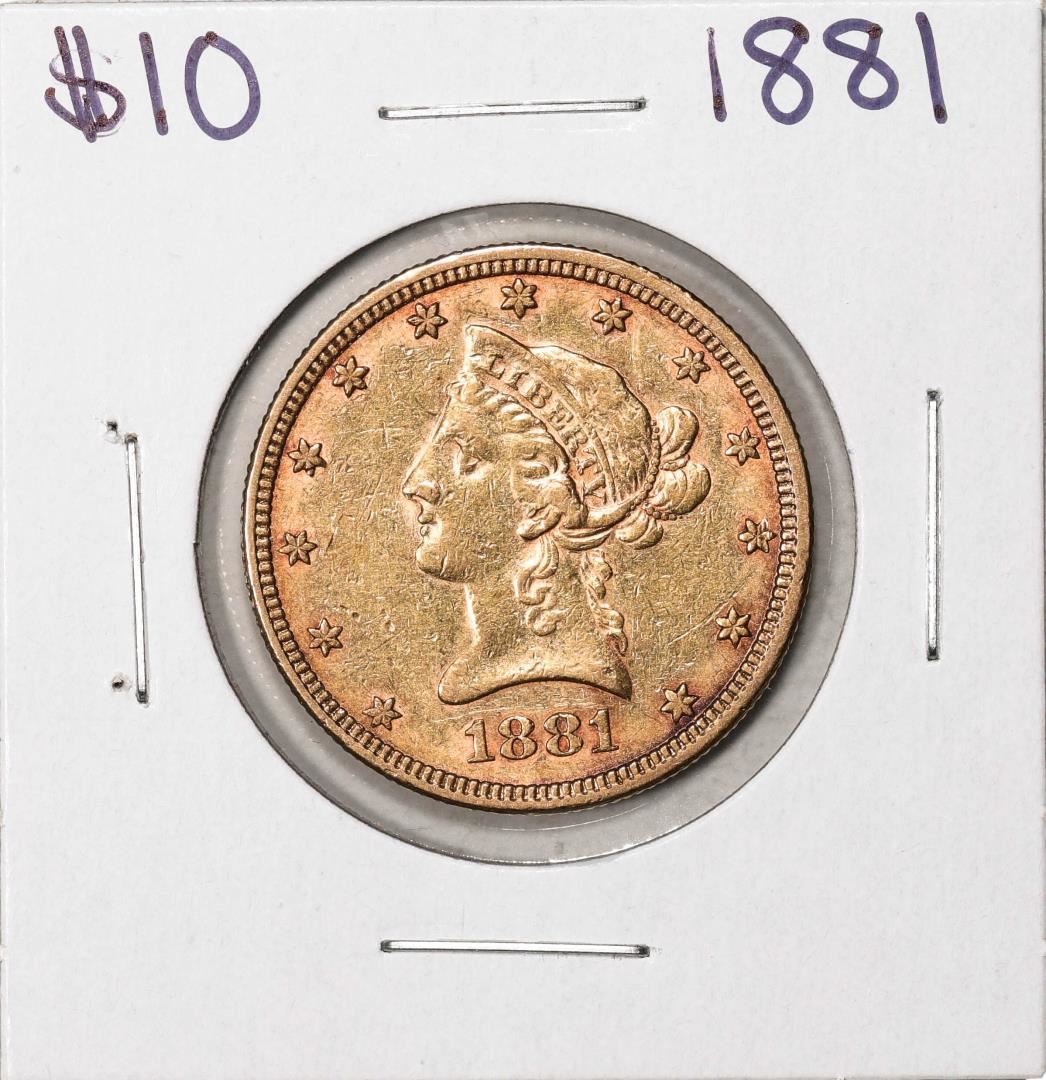 One 1881 $10 Liberty Head Eagle Gold Coin.