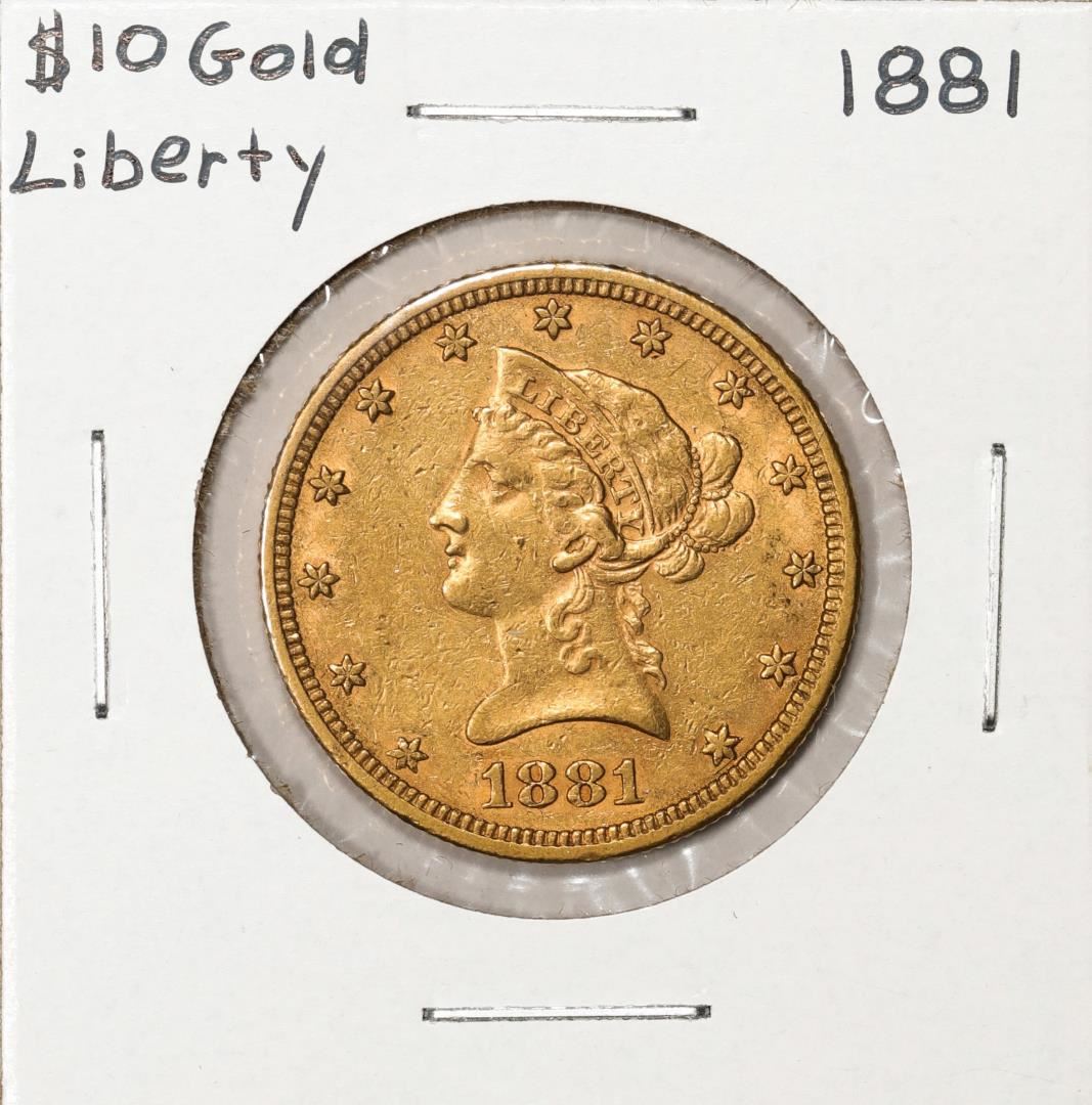 One 1881 $10 Liberty Head Eagle Gold Coin.