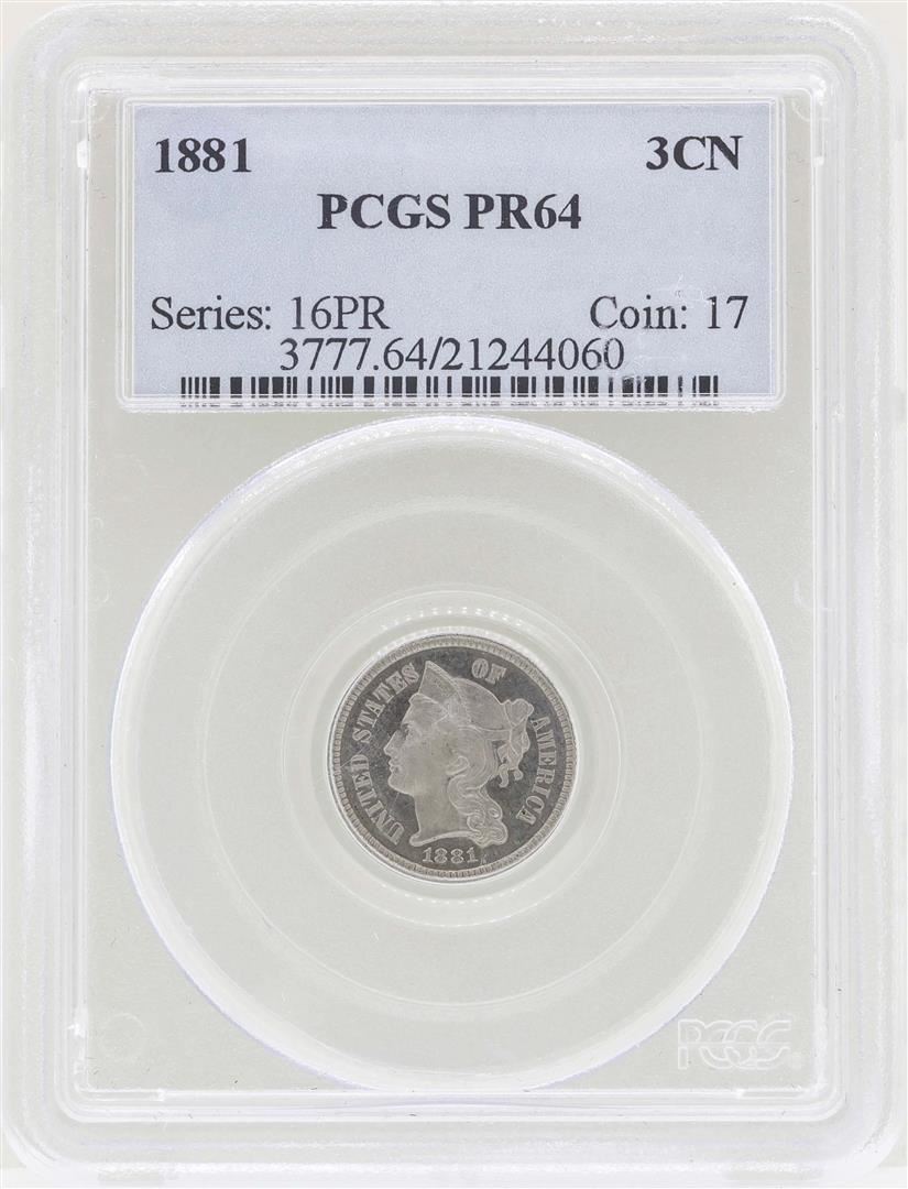 One 1881 3 Cent Nickel Proof Coin PCGS PR64. PCGS Graded.