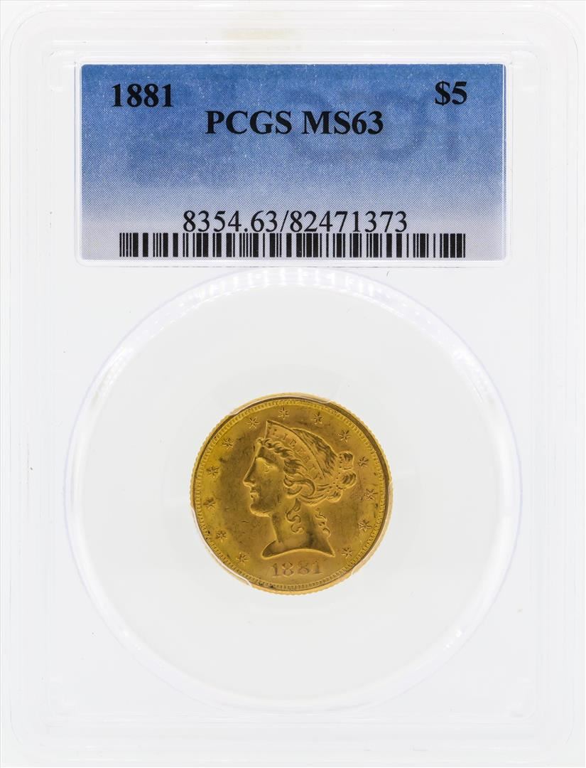 One 1881 $5 Libertry Head Half Eagle Gold Coin PCGS MS63. PCGS Graded.