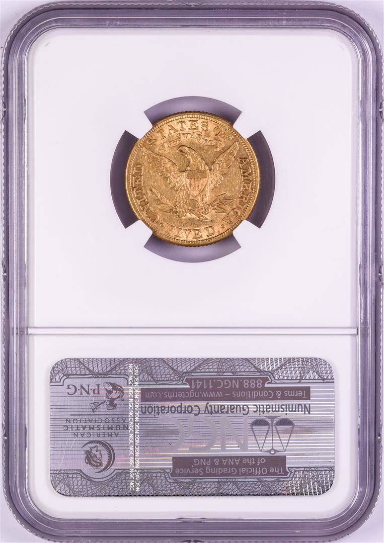One 1881 $5 Liberty Head Half Eagle Gold Coin NGC AU55. NGC Certified.