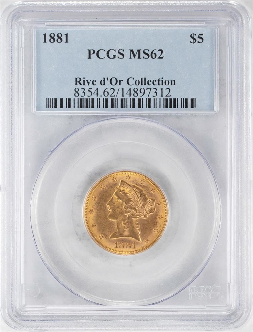 One 1881 $5 Liberty Head Half Eagle Gold Coin PCGS MS62. PCGS Graded.