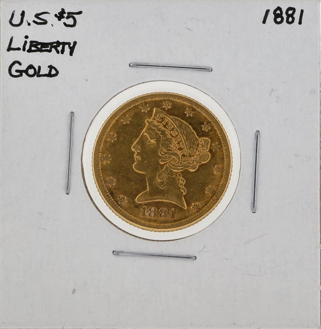 One 1881 $5 Liberty Head Half Eagle Gold Coin.