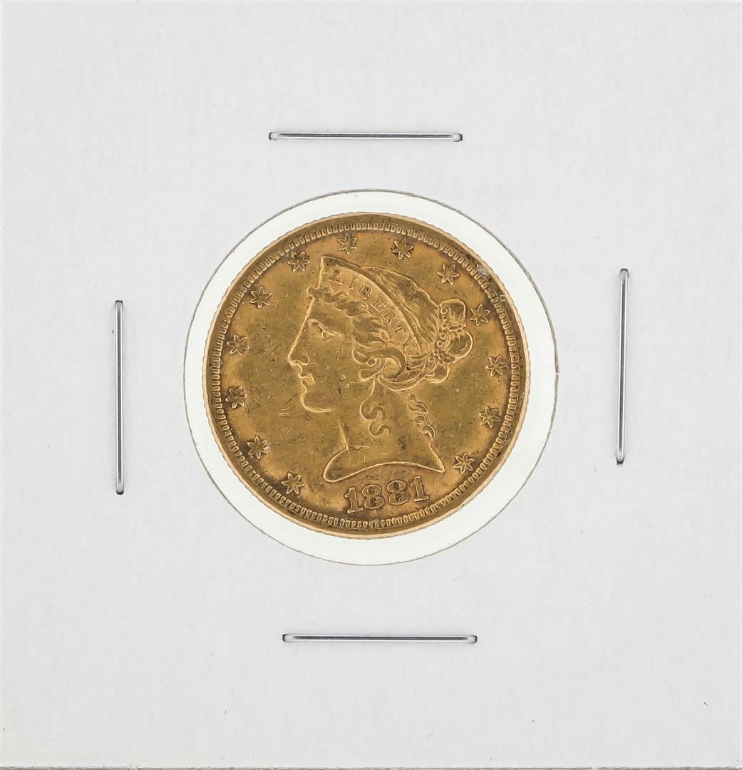 One 1881 $5 Liberty Head Half Eagle Gold Coin.
