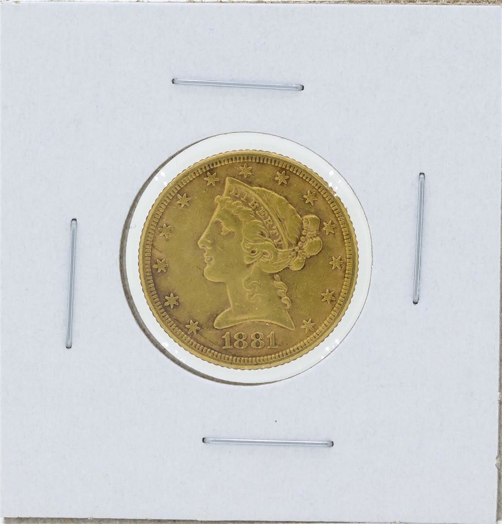 One 1881 $5 Liberty Head Half Eagle Gold Coin.