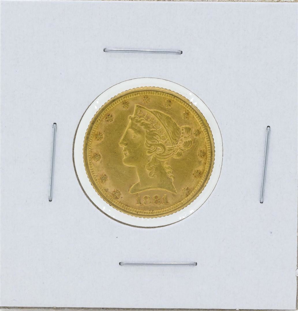 One 1881 $5 Liberty Head Half Eagle Gold Coin.