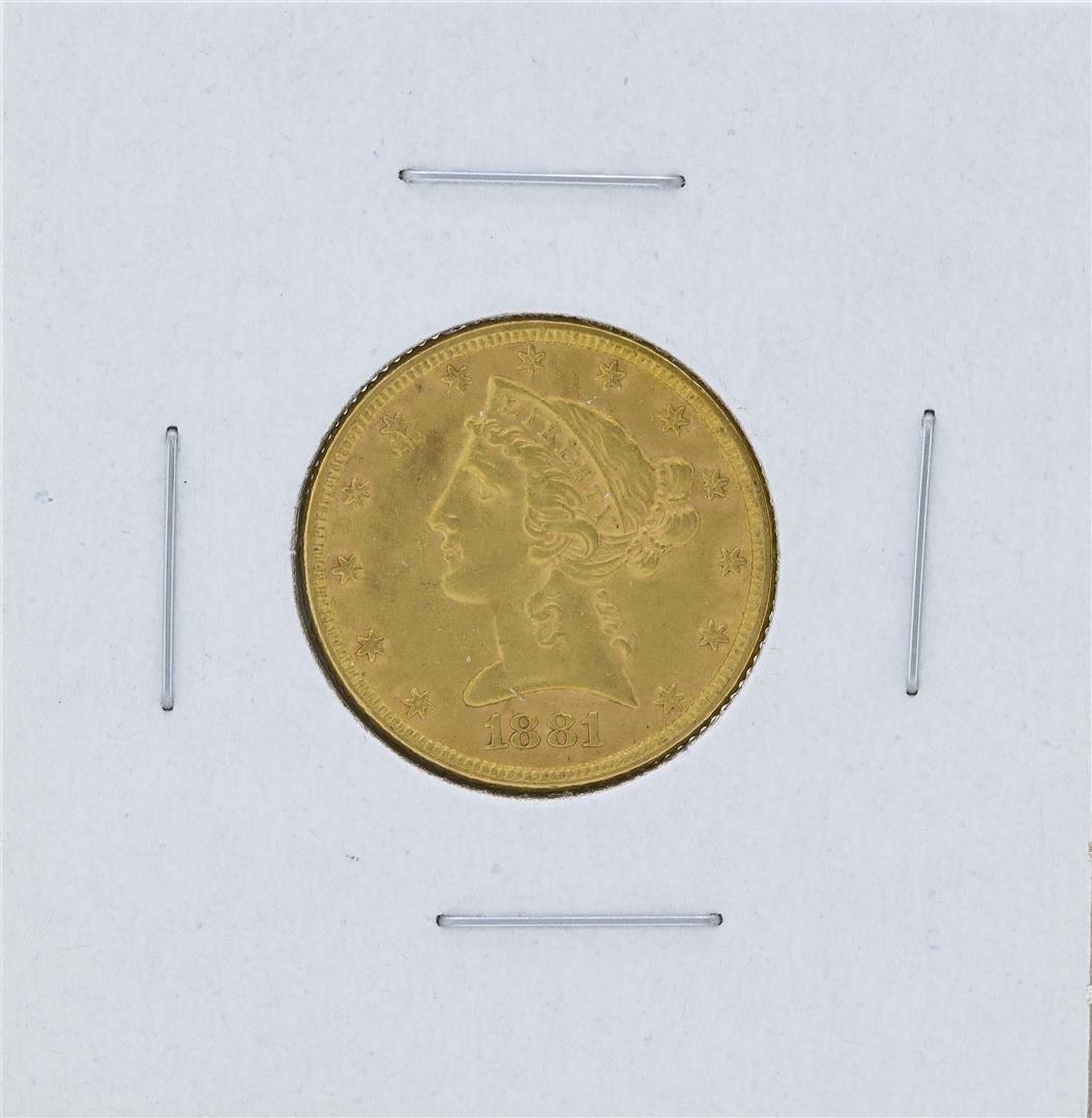 One 1881 $5 Liberty Head Half Eagle Gold Coin.