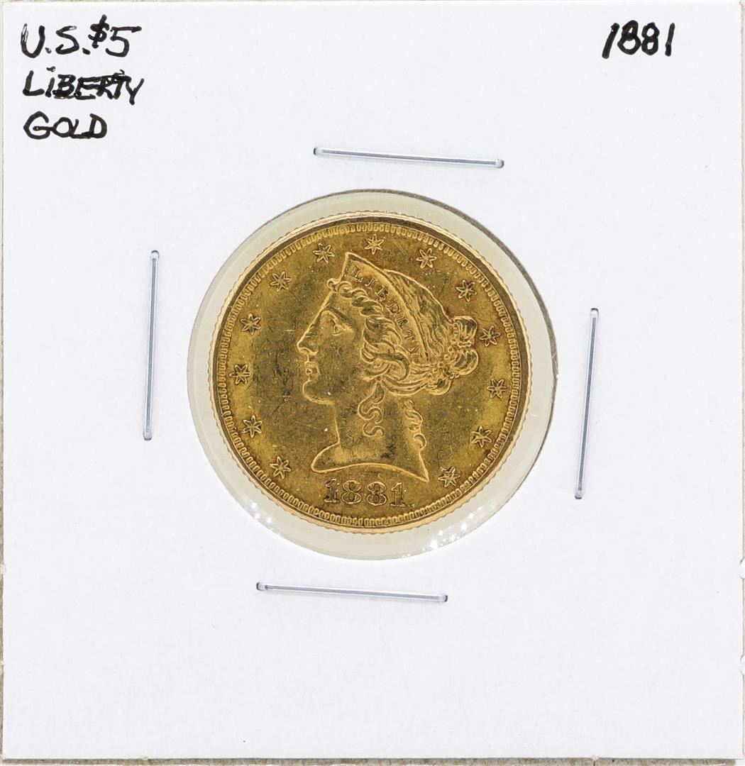 One 1881 $5 Liberty Head Half Eagle Gold Coin.