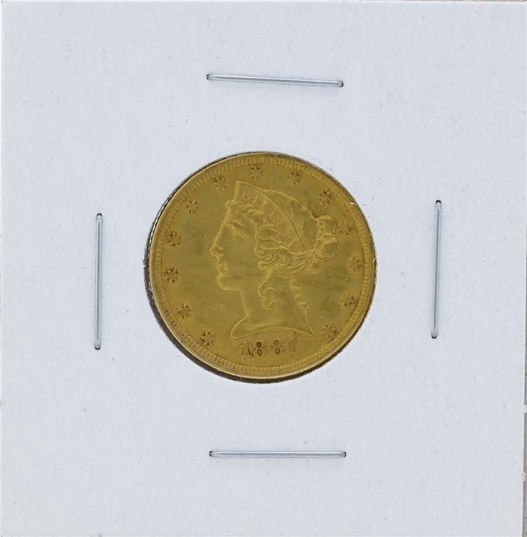 One 1881 $5 Liberty Head Half Eagle Gold Coin.