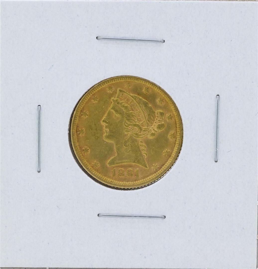 One 1881 $5 Liberty Head Half Eagle Gold Coin.