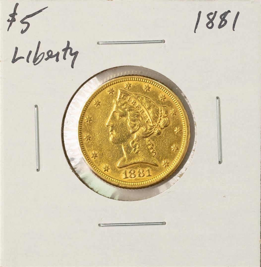 One 1881 $5 Liberty Head Half Eagle Gold Coin.