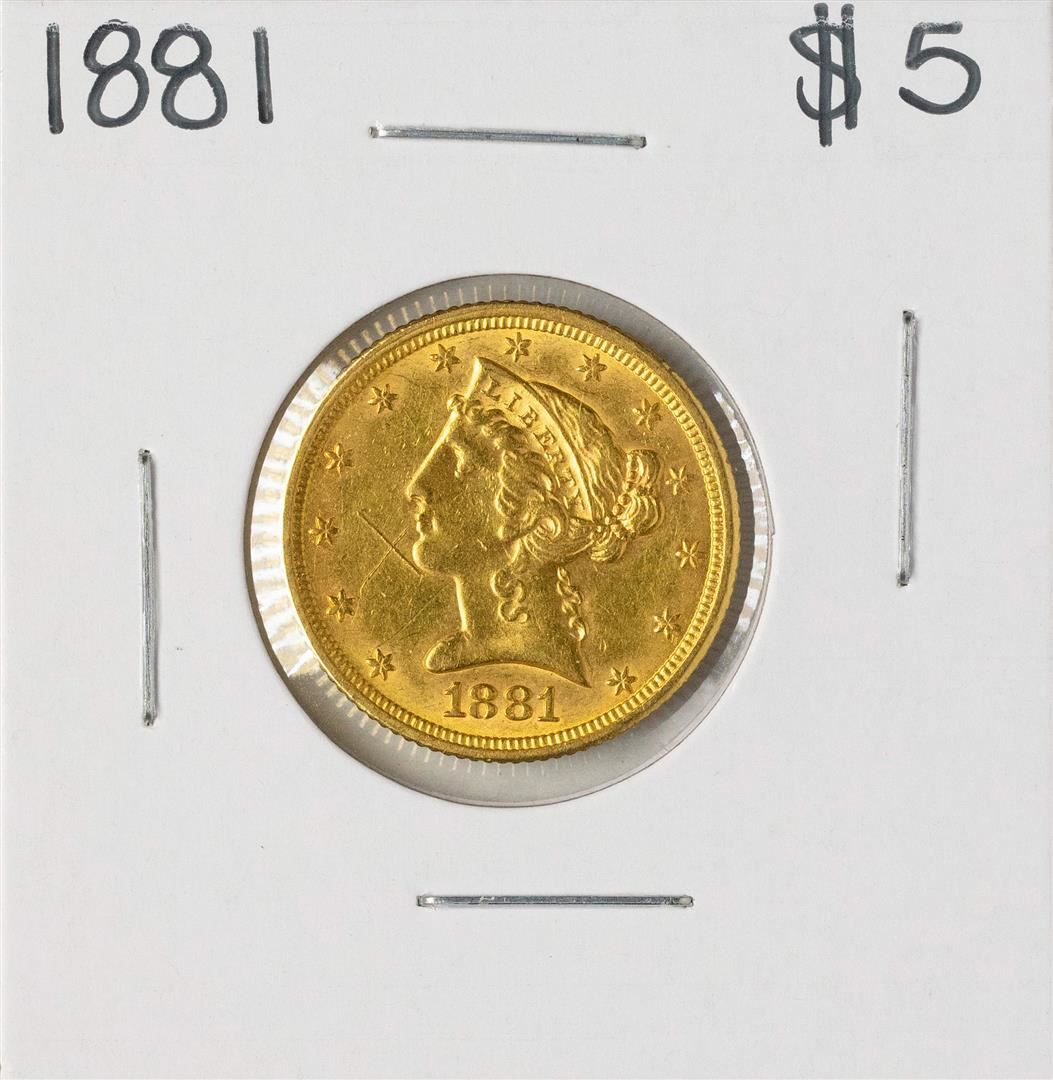 One 1881 $5 Liberty Head Half Eagle Gold Coin.