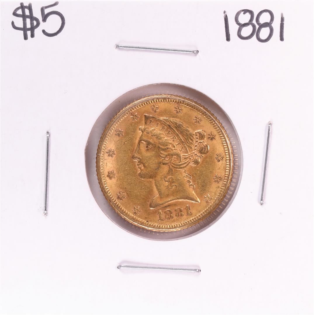 One 1881 $5 Liberty Head Half Eagle Gold Coin.
