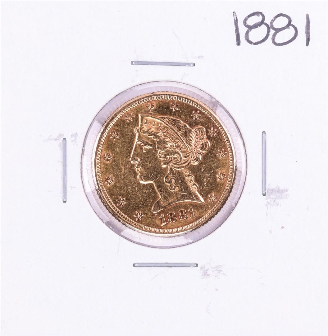 One 1881 $5 Liberty Head Half Eagle Gold Coin.