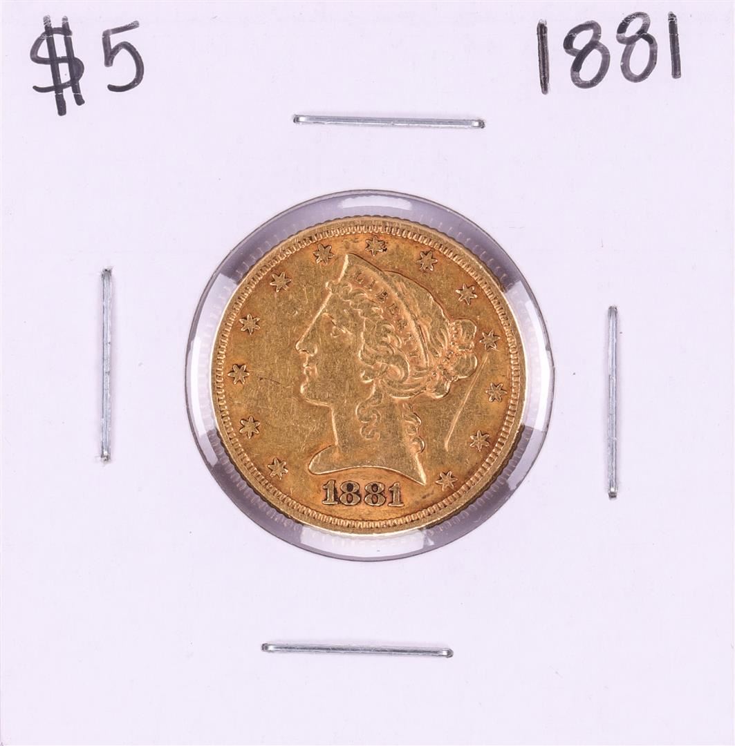 One 1881 $5 Liberty Head Half Eagle Gold Coin.