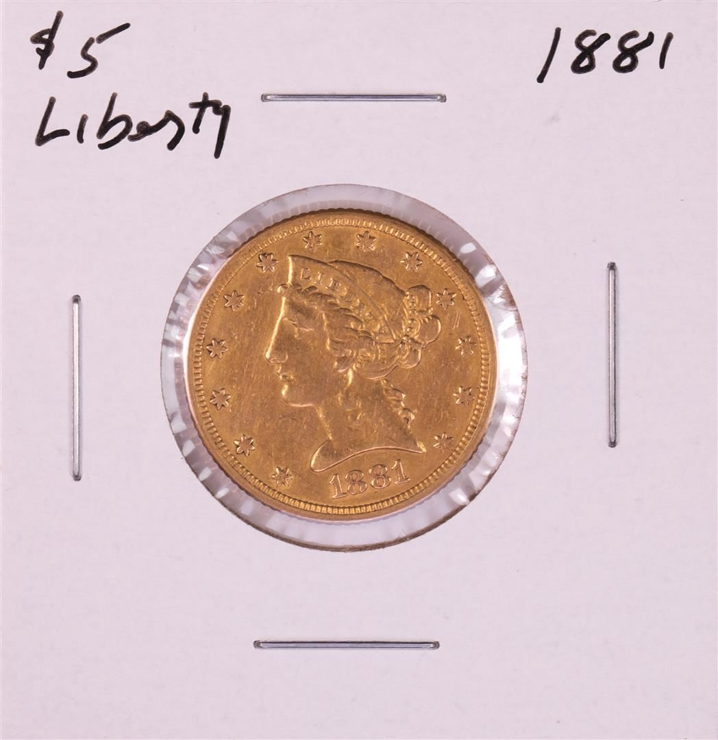 One 1881 $5 Liberty Head Half Eagle Gold Coin.