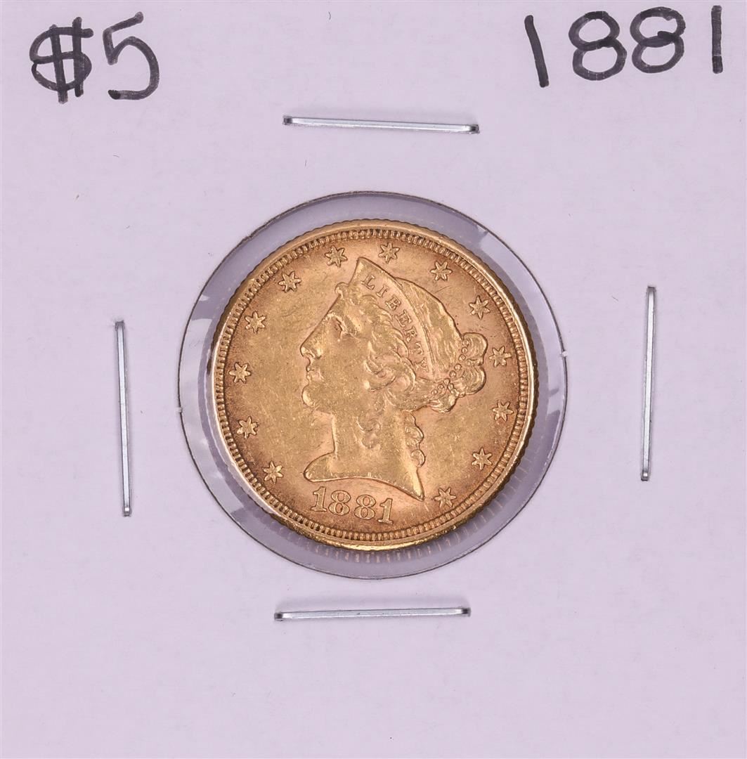 One 1881 $5 Liberty Head Half Eagle Gold Coin.