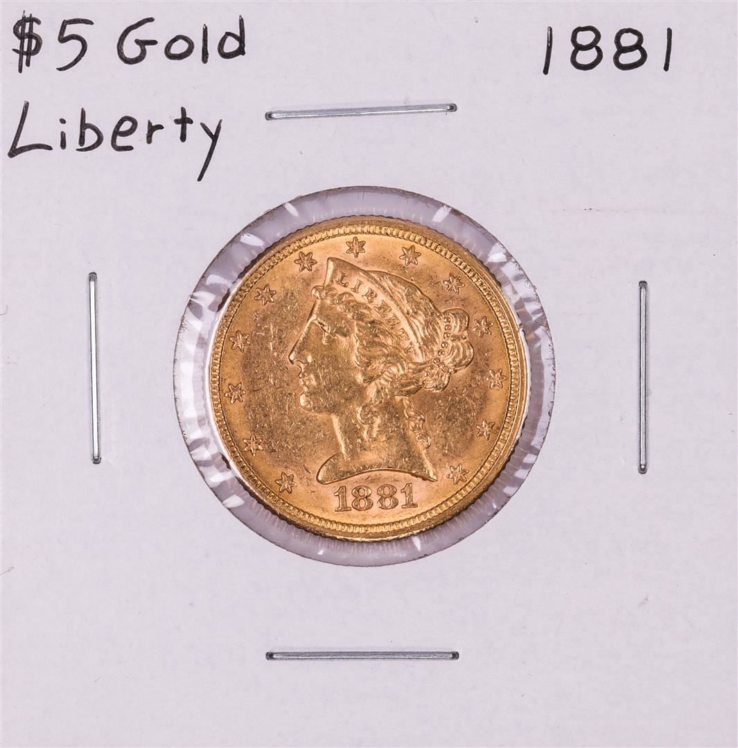 One 1881 $5 Liberty Head Half Eagle Gold Coin.