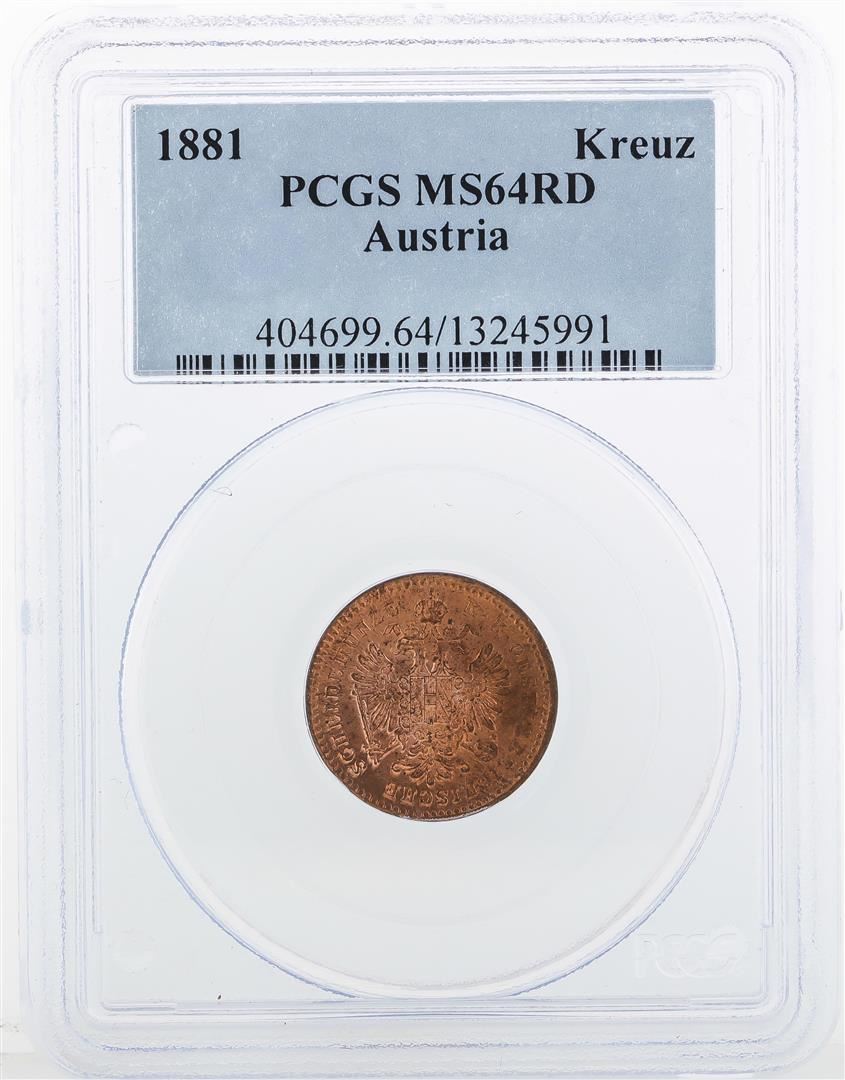 One 1881 Austria 1 Kreuzer Coin PCGS MS64RD. PCGS Graded.