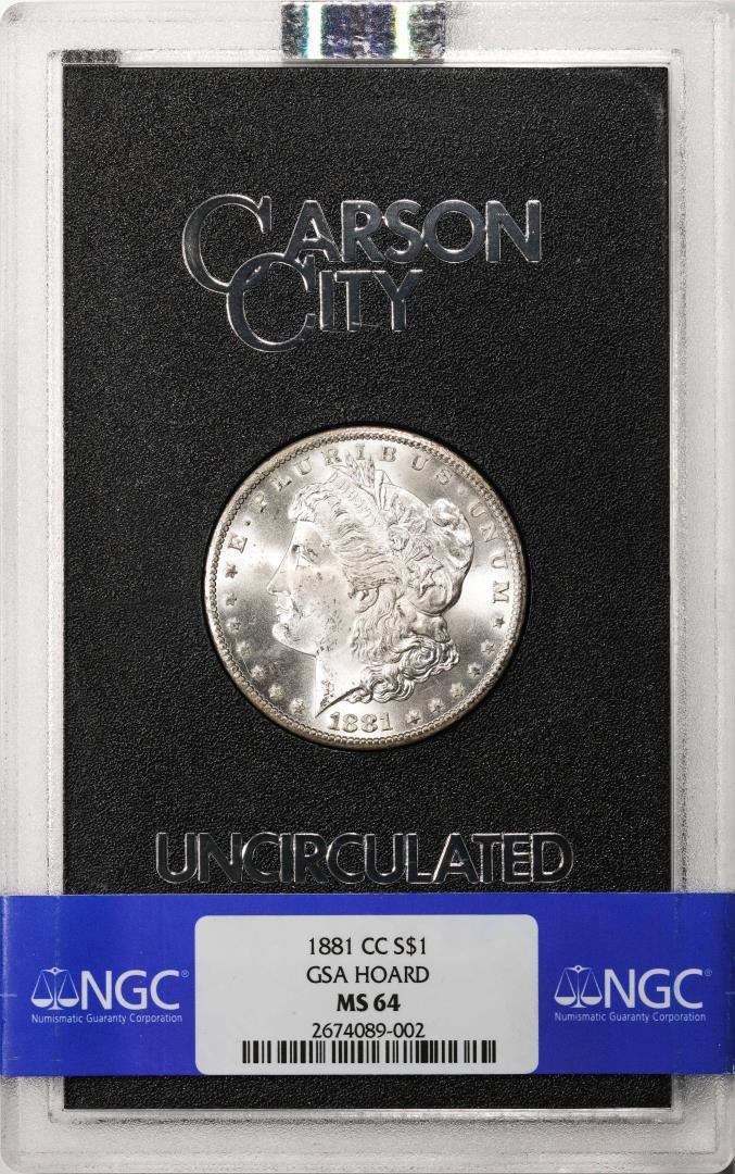 1881-CC $1 Morgan Silver Dollar Coin GSA Hoard Uncirculated NGC MS64 w/Box & COA