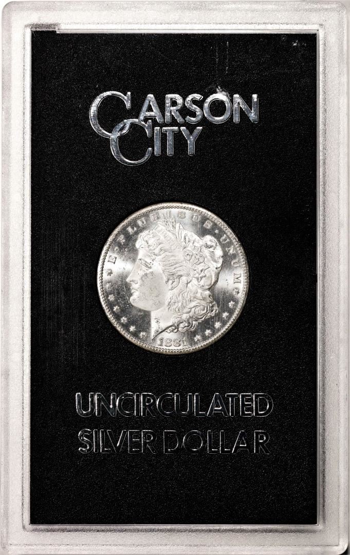 One 1881-CC $1 Morgan Silver Dollar Coin GSA Hoard Uncirculated.