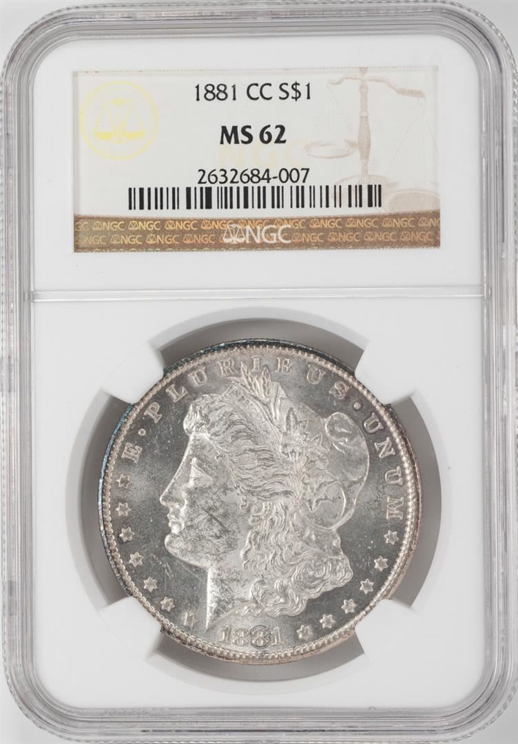 One 1881-CC $1 Morgan Silver Dollar Coin NGC MS62. NGC Certified.