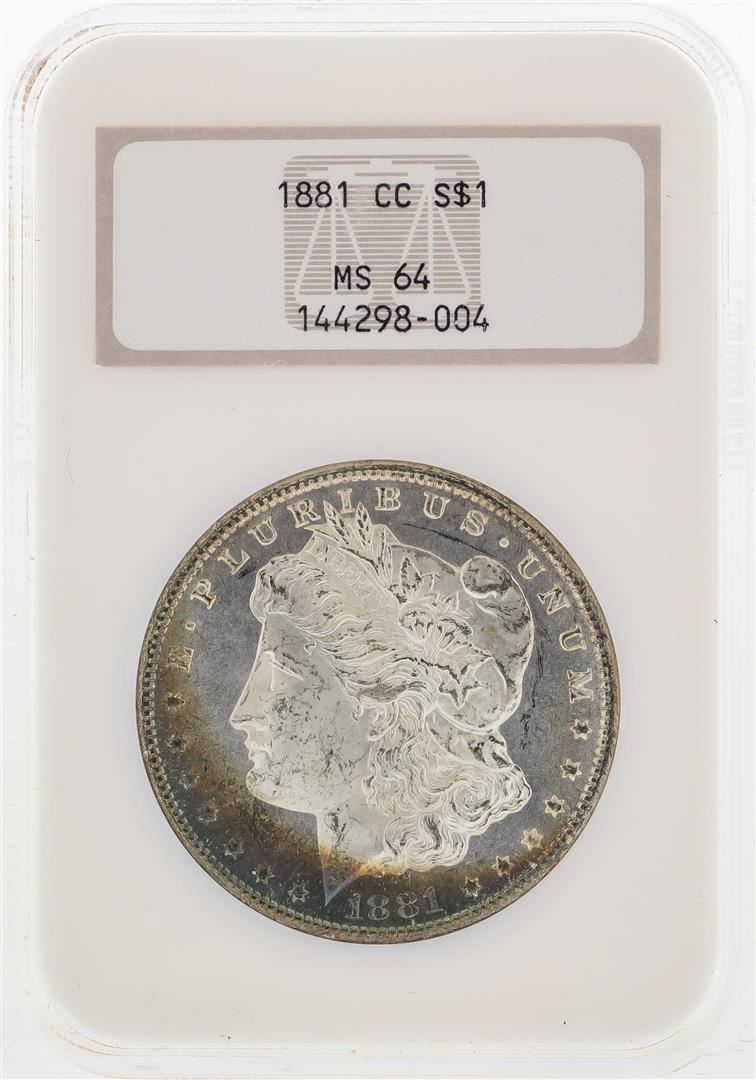 One 1881-CC $1 Morgan Silver Dollar Coin NGC MS64. NGC Certified.