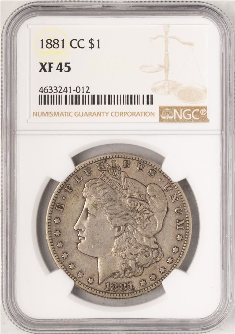 One 1881-CC $1 Morgan Silver Dollar Coin NGC XF45. NGC Certified.
