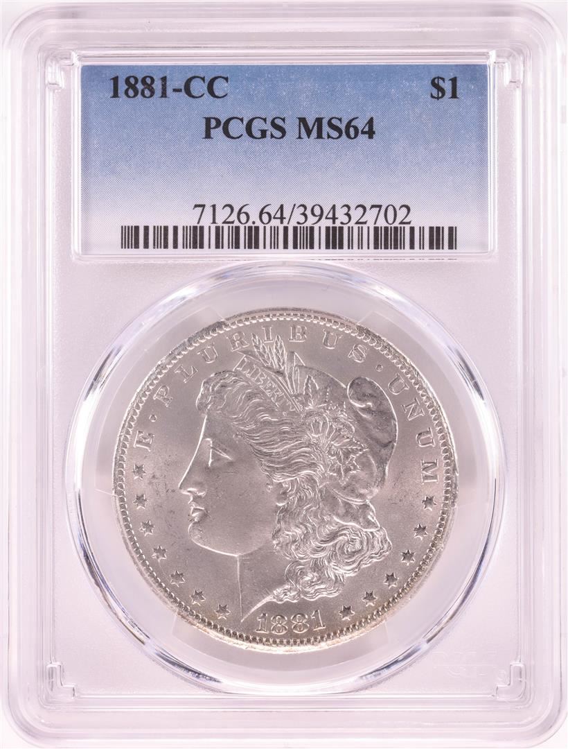 One 1881-CC $1 Morgan Silver Dollar Coin PCGS MS64. PCGS Graded.