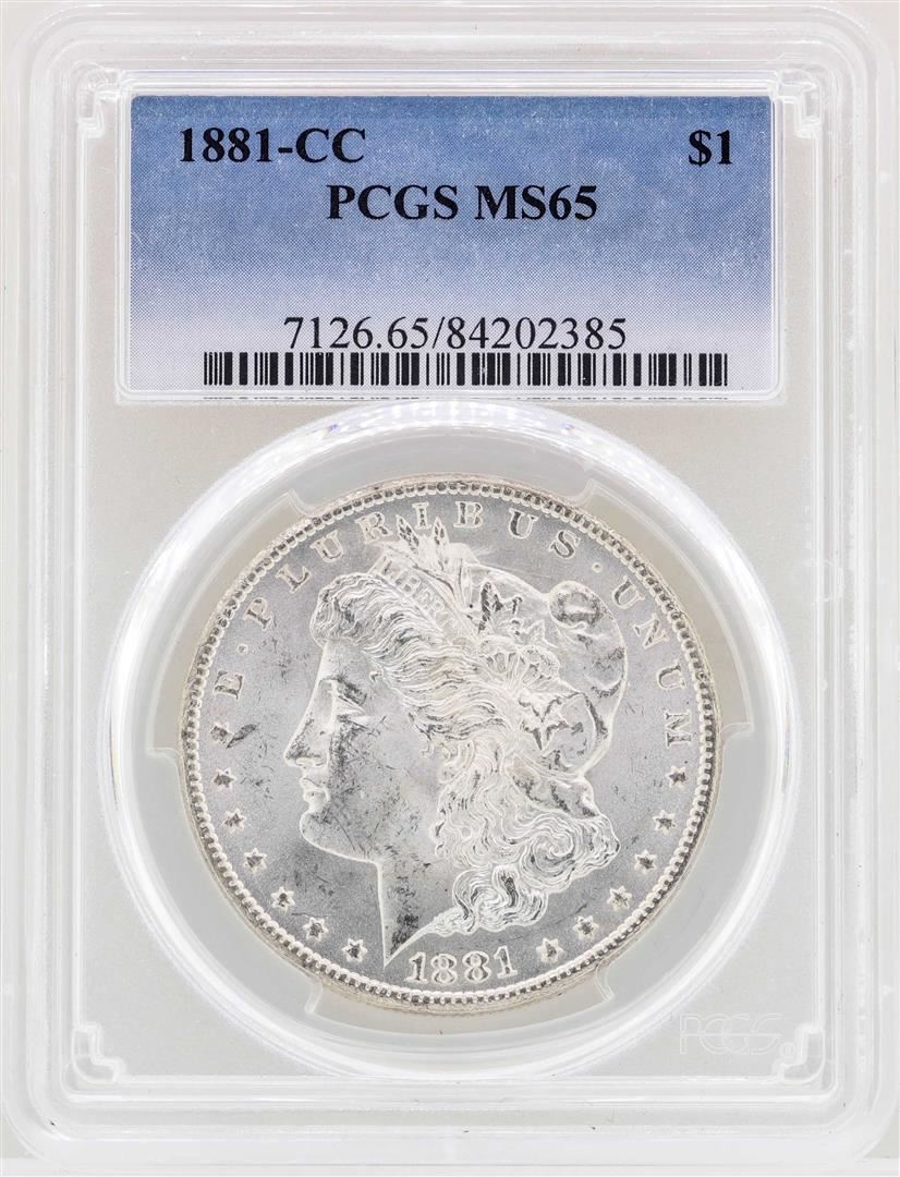 One 1881-CC $1 Morgan Silver Dollar Coin PCGS MS65. PCGS Graded.